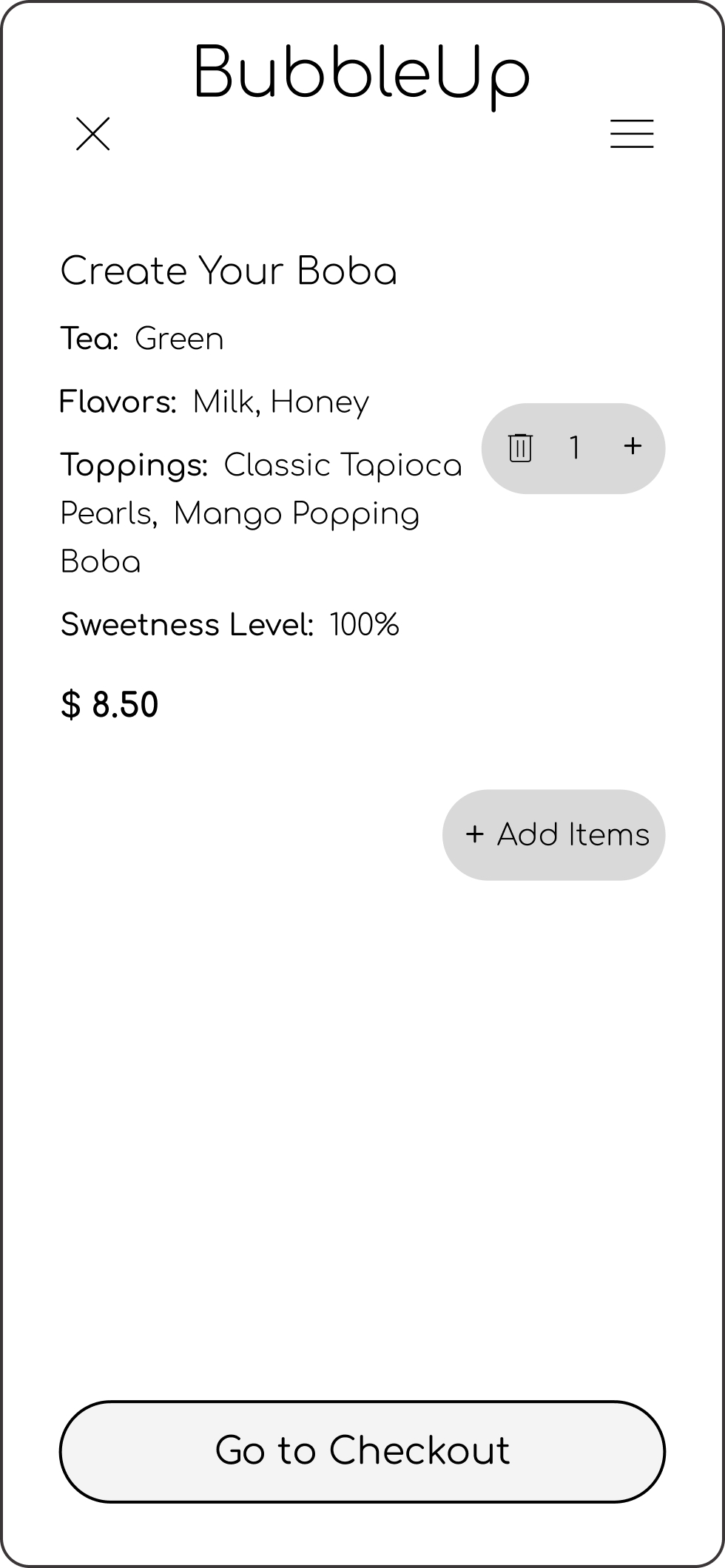 This project is a capstone project from the UI/UX Design Specialization by California Institute of the Arts (CalArts). It revolves around designing an intuitive and user-friendly digital experience for BubbleUp, a boba tea restaurant. The project focuses on creating a seamless online ordering platform for users to customize and order their favorite drinks, emphasizing user convenience, customization, and efficient delivery.